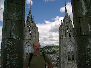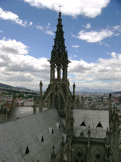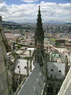 I love old cities, old churches, and and the adventure of exploring them--particularly when it involves climbing. On the last day of my trip here in 2008, Megan and I walked up from the old historic district of Quito to the National Basilica of the Vote. The Diocese of Quito had this cathedral constructed in the 1940s & 50s(?) to rival the great cathedrals of Europe. I was very disappointed that the observation towers were already closed that day so today I gave it another try.