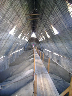 I never imagined how many different staircases, walkways, and ladders of various descriptions could be in one building. After a routine beginning of easy stairs and the first observation point I ventured a little farther and was surprised to discover a wooden walkway/gangplank constructed between the vaulted ceiling of the cathedral and the roof above. No handrails--only a strand of rope on each side to keep one from falling onto the ceiling! At the end of the walkway was a steel ladder which led to outside the roof and to two other ladders leading up to an open observation spot atop the northern spire of the church. (Lawyers in the U.S. would salivate over the potential for lawsuits!)
